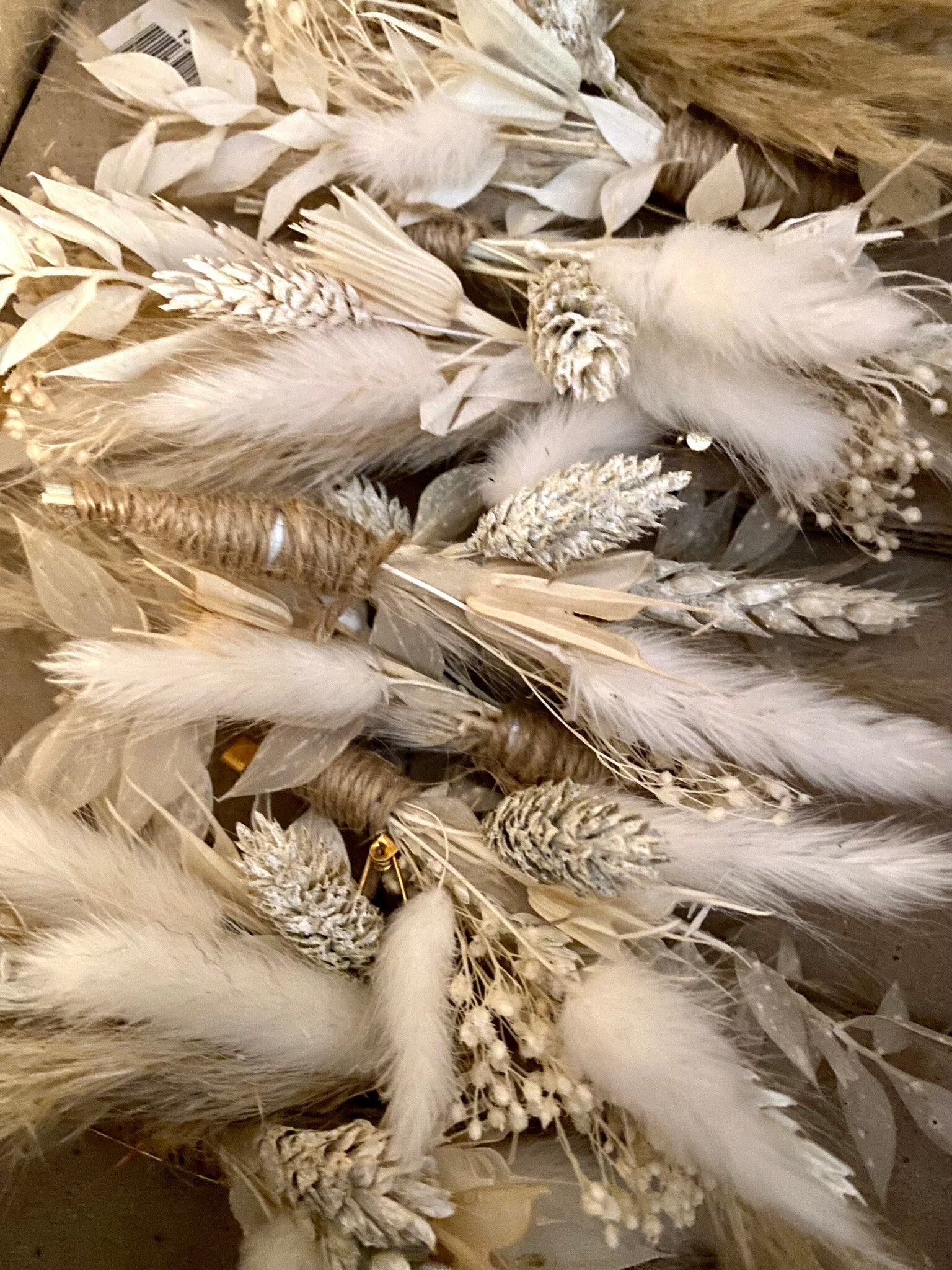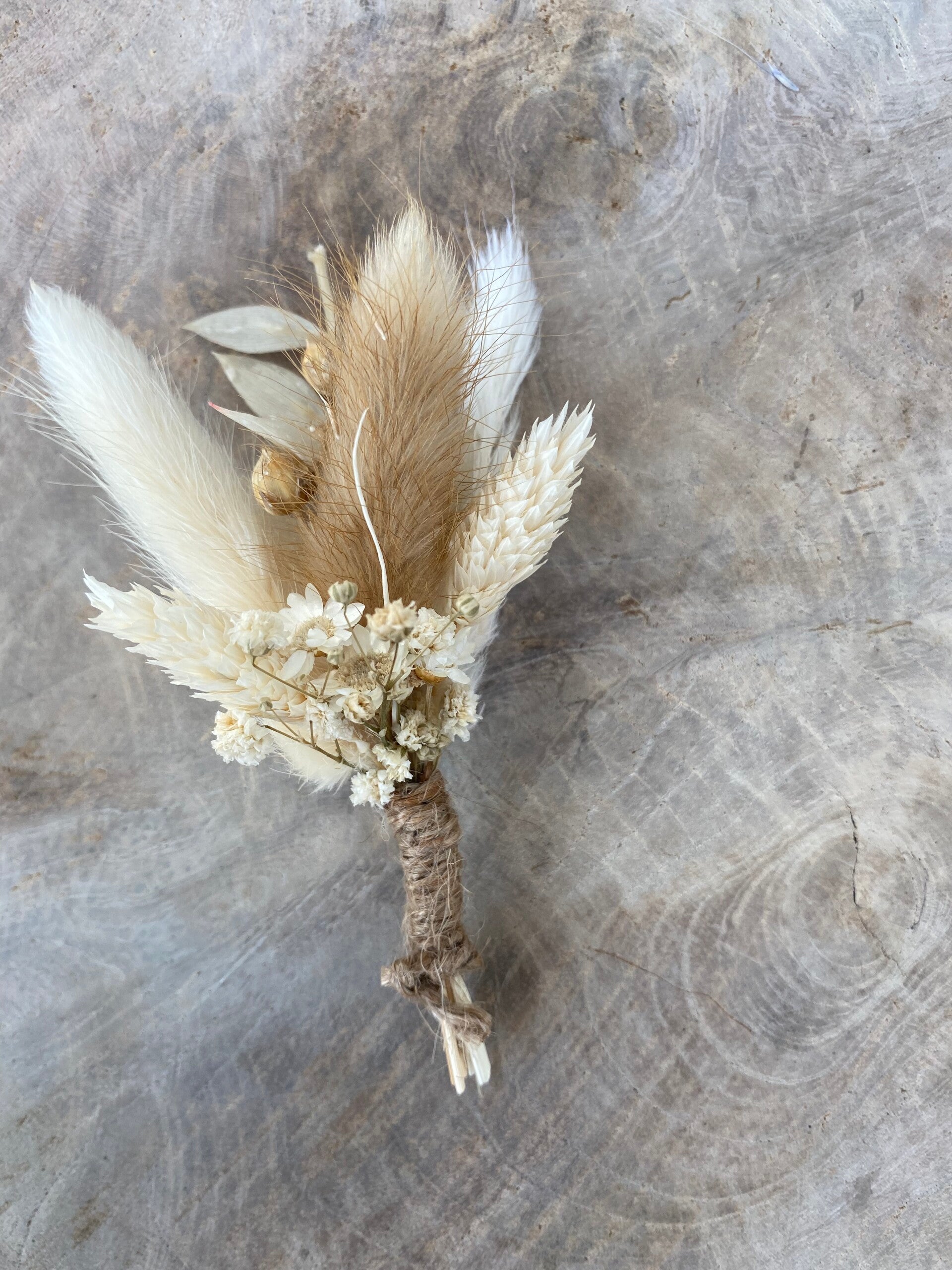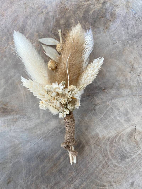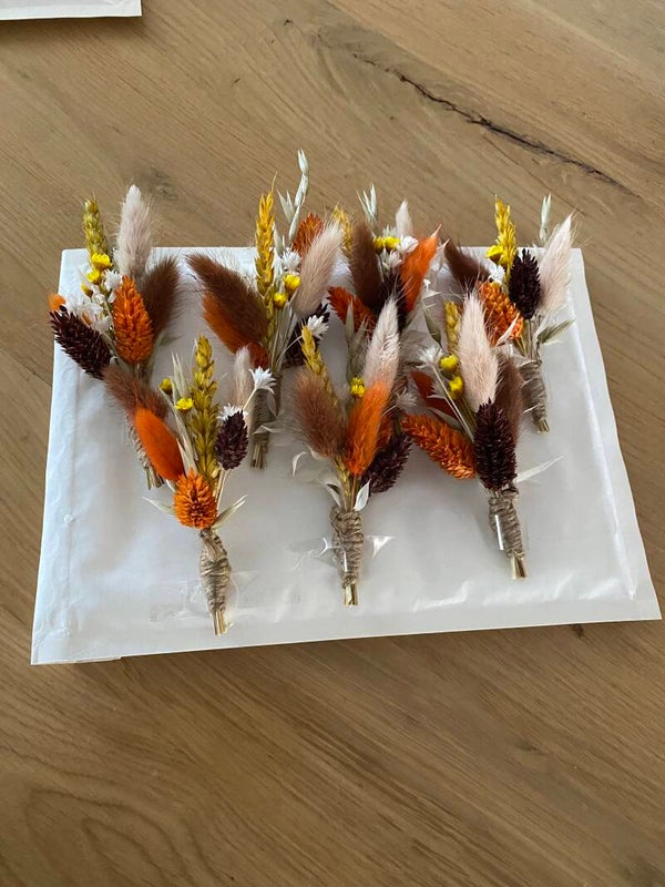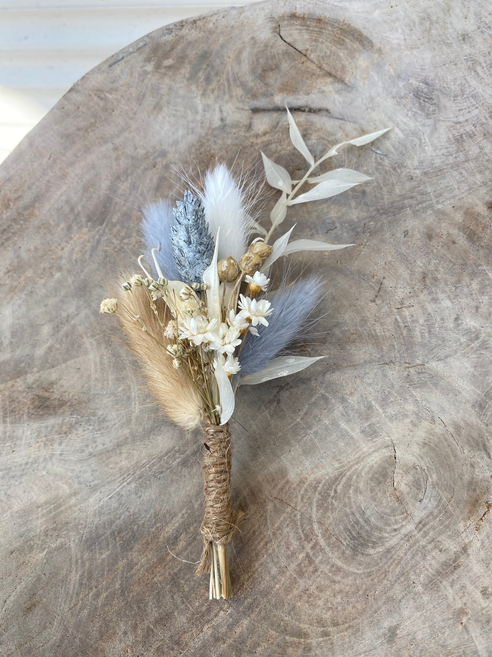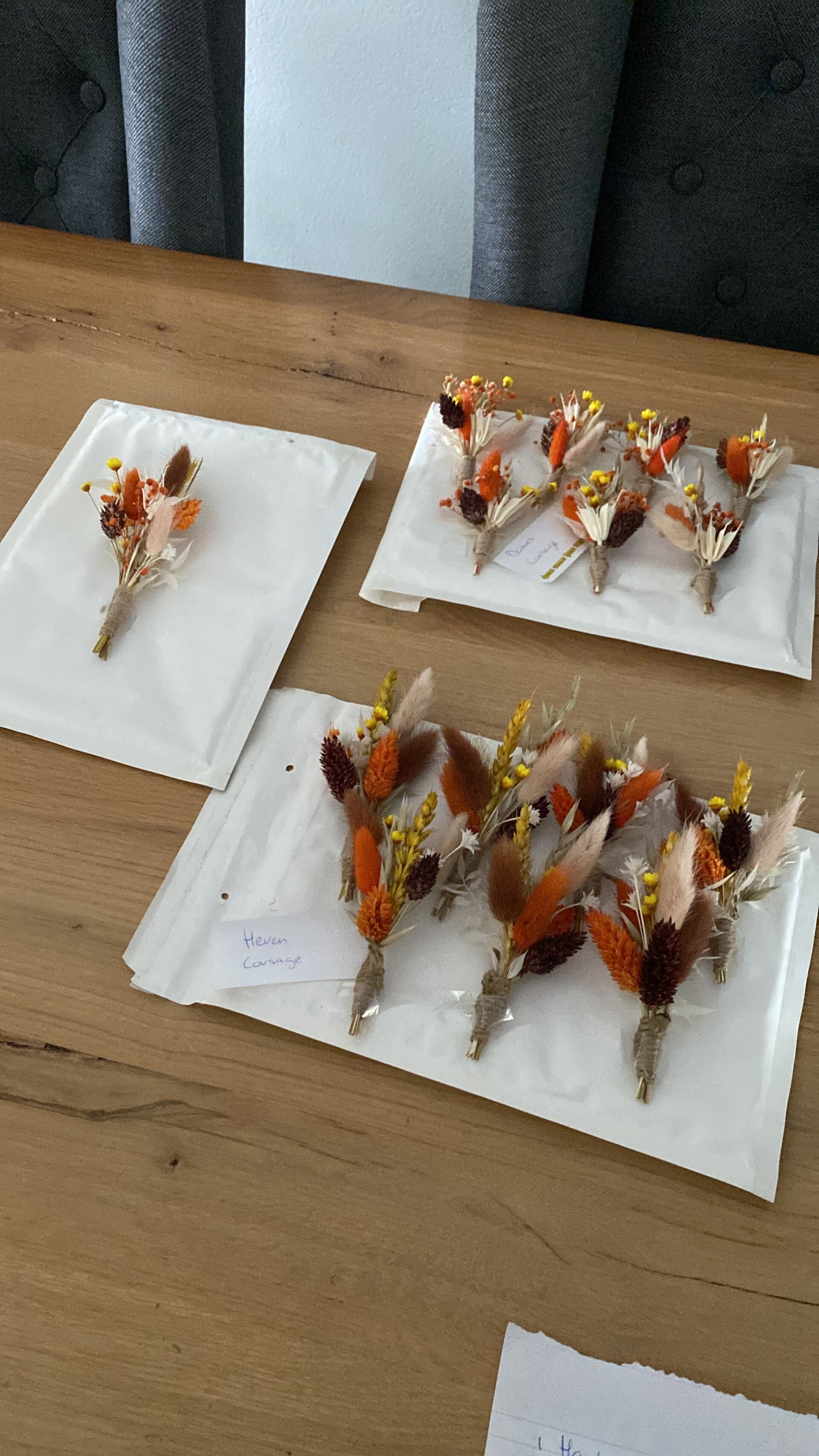 Corsages (met speld) kunnen in iedere kleur droogbloemen gemaakt worden die jij graag wil!