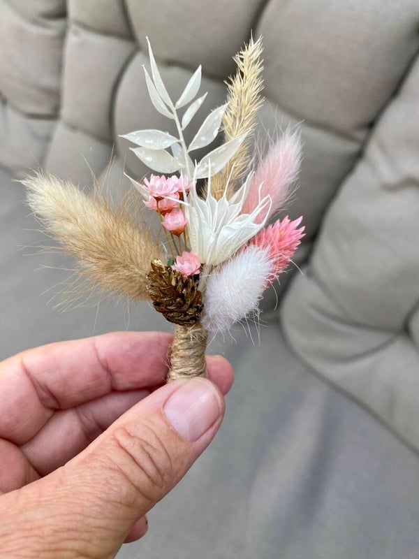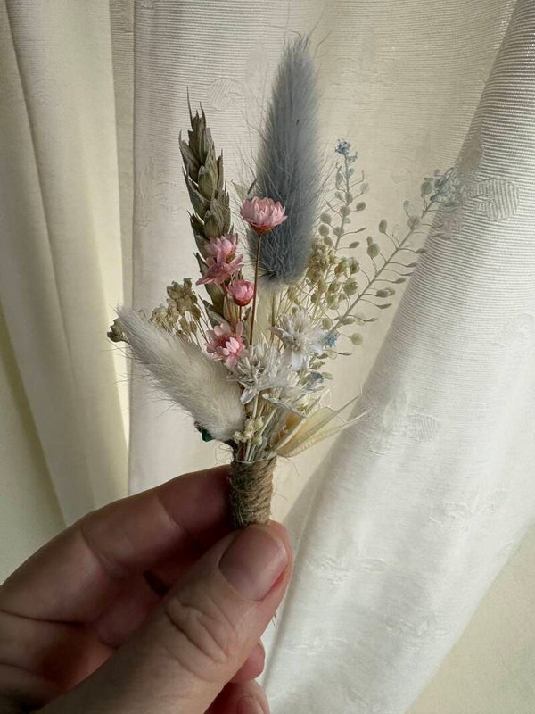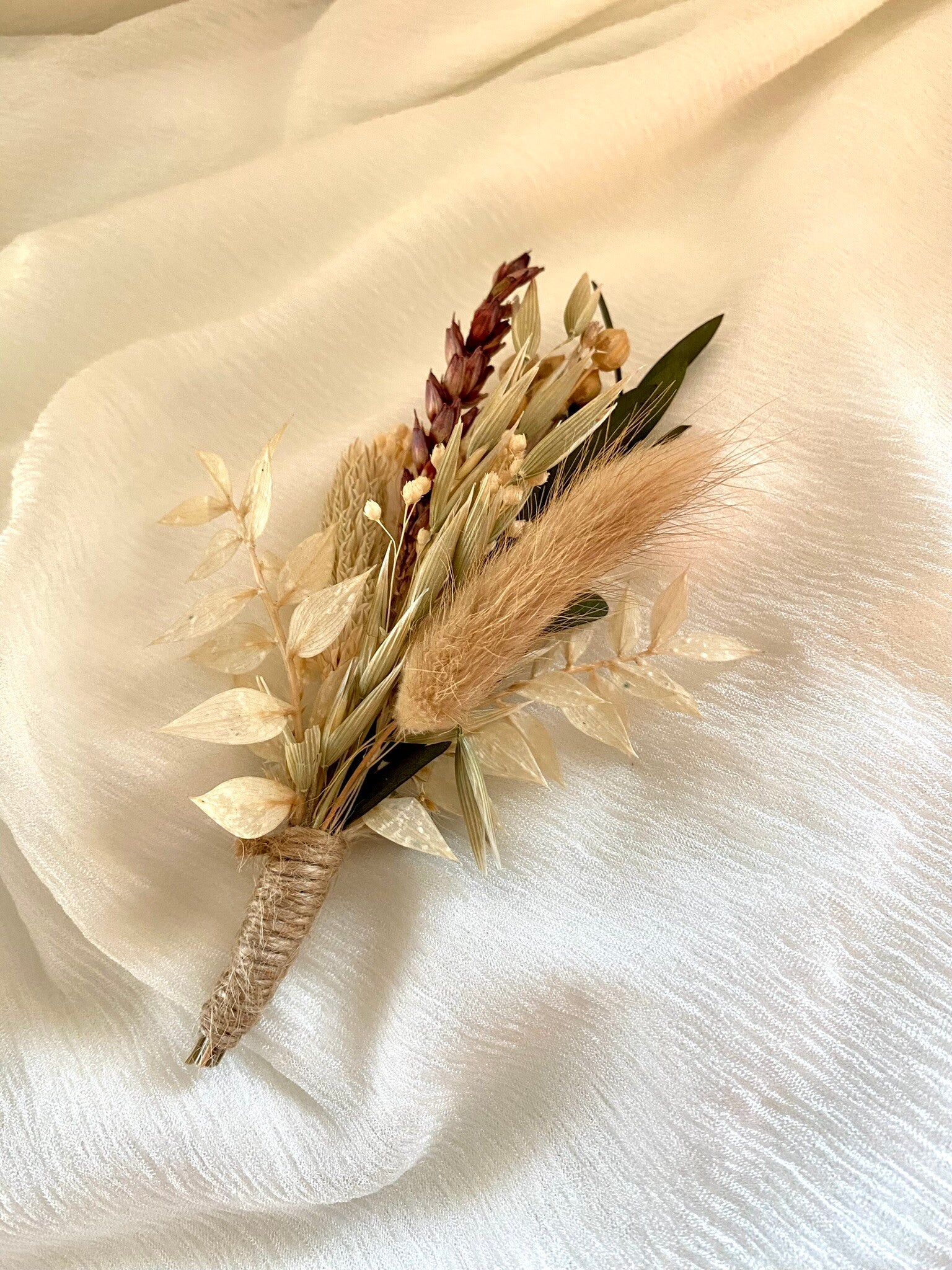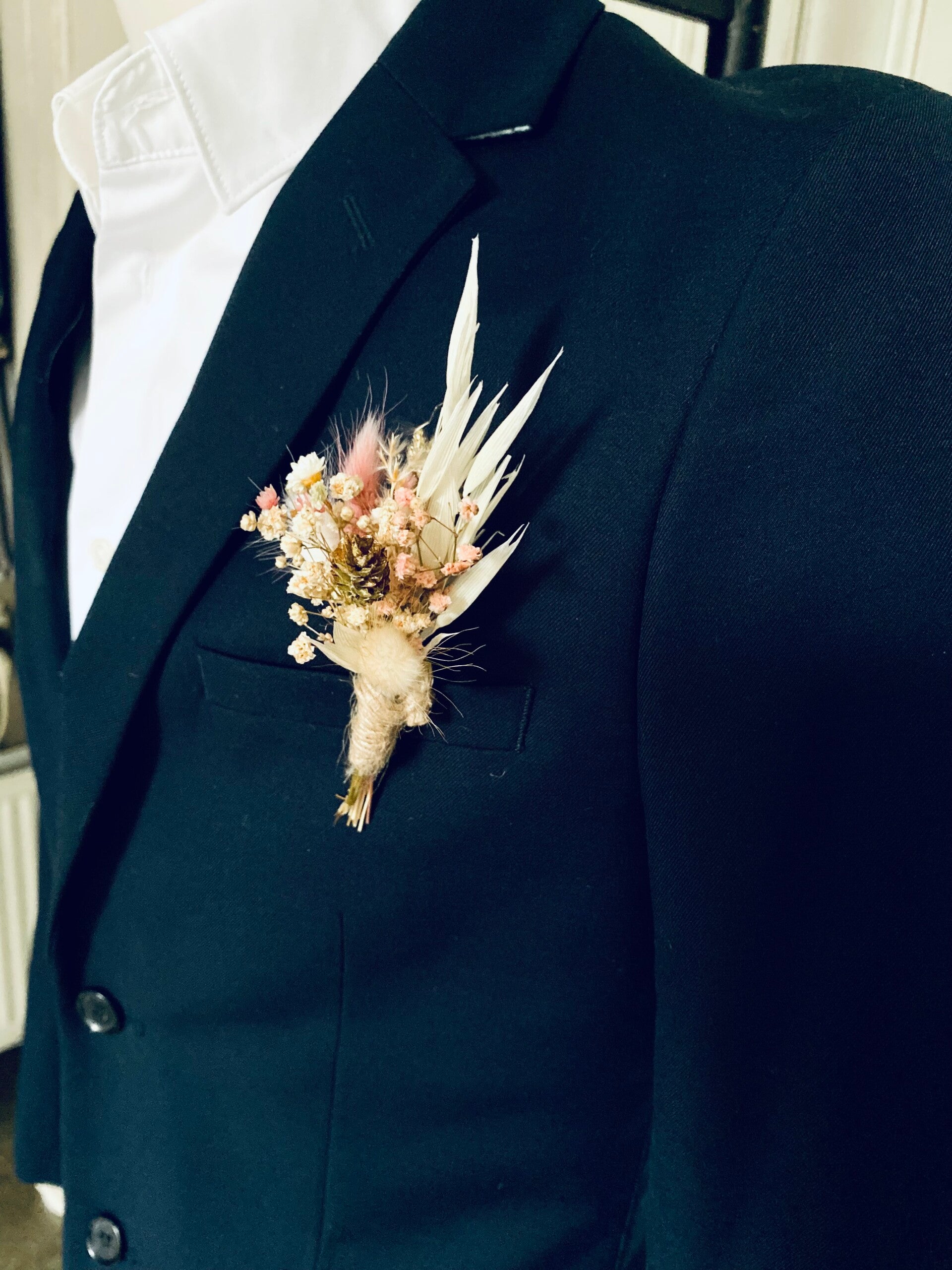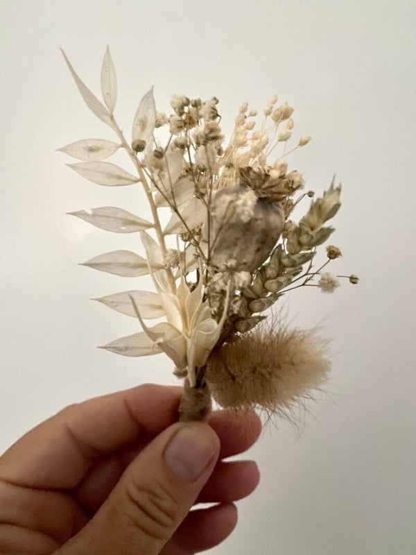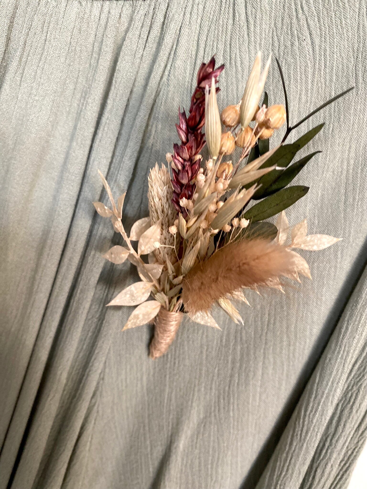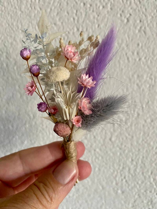 Corsages (met speld) kunnen in iedere kleur droogbloemen gemaakt worden die jij graag wil!