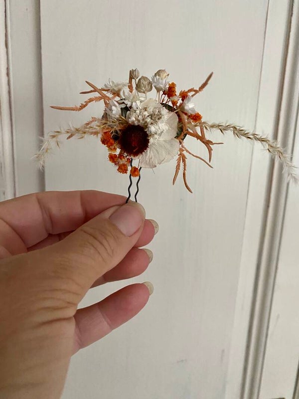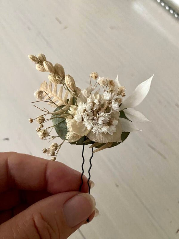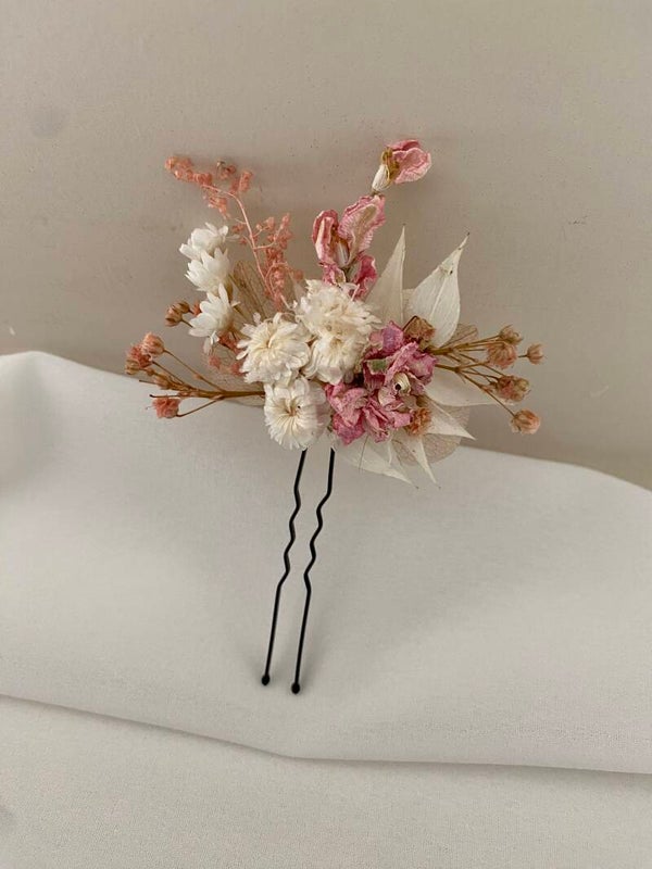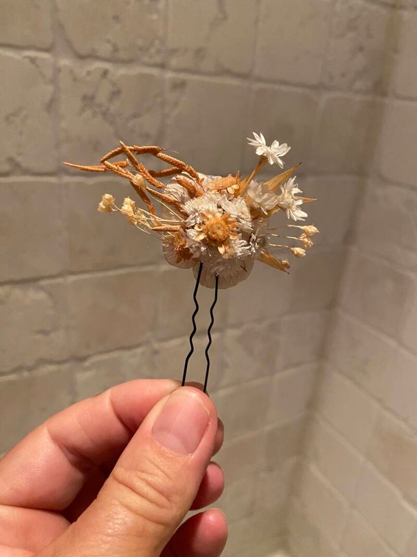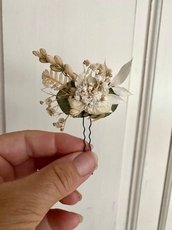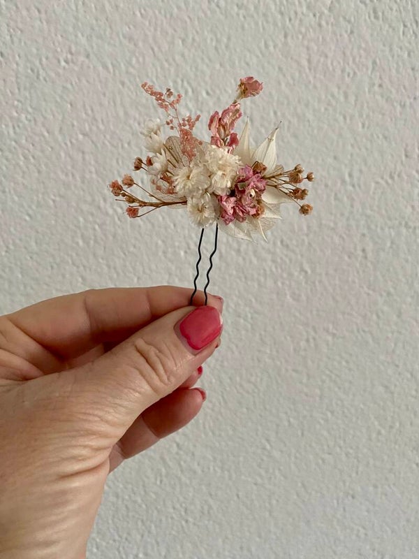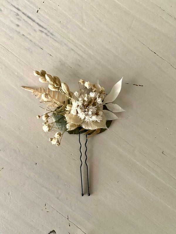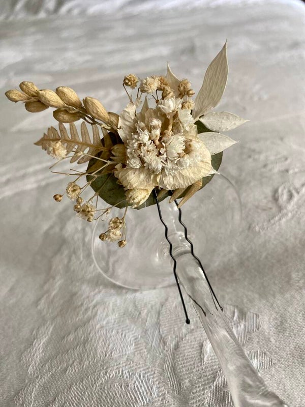 “Haarpin /dotspeld met droogbloemen gelijmd”