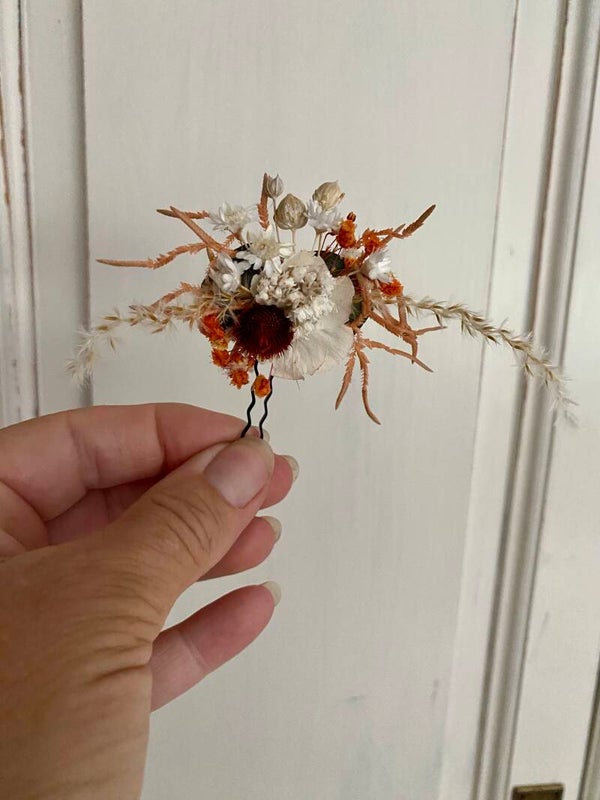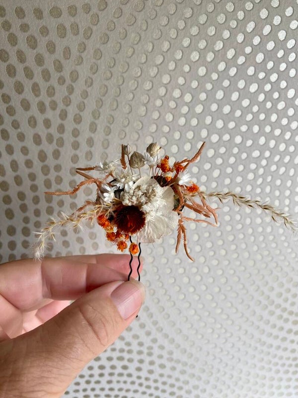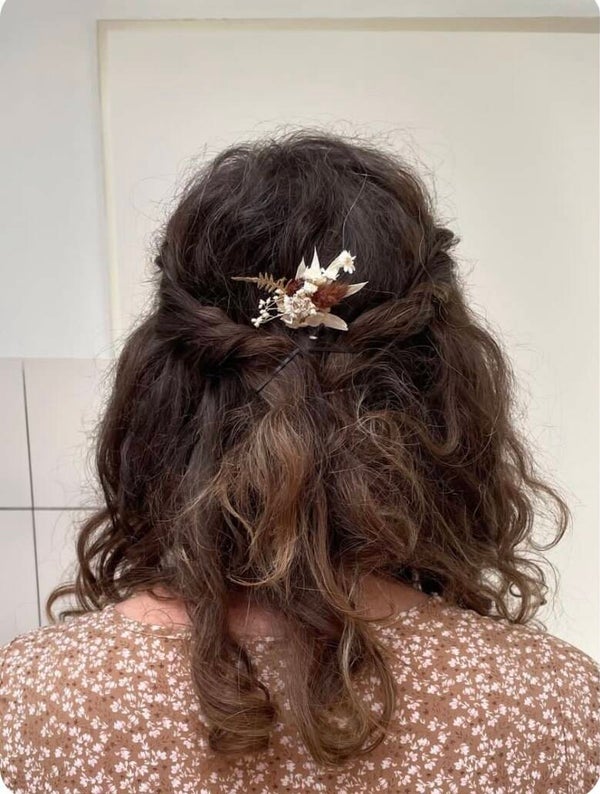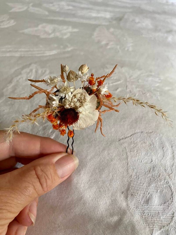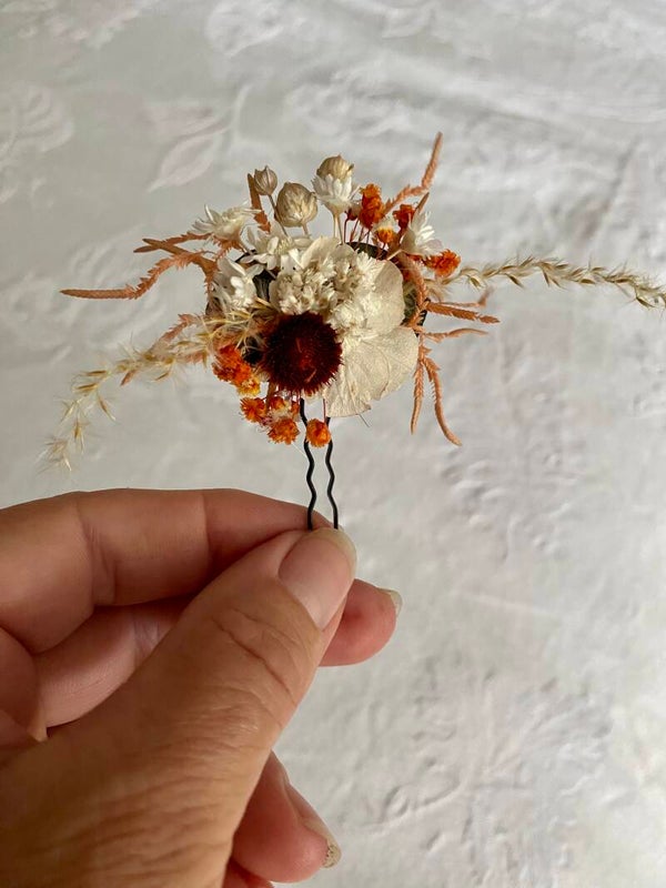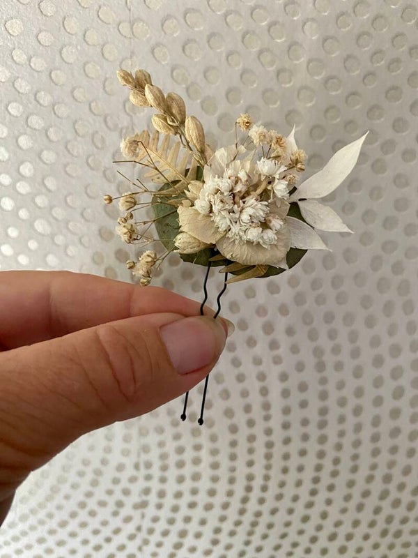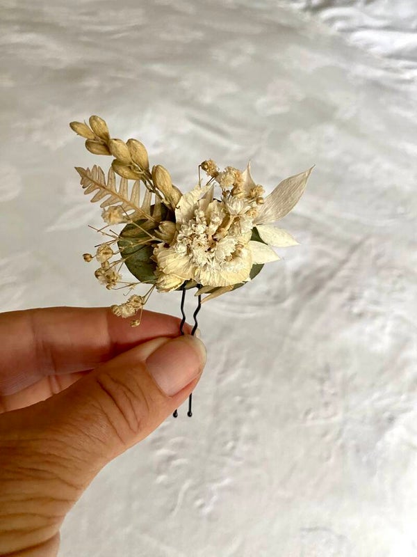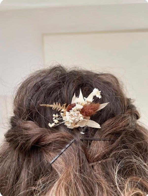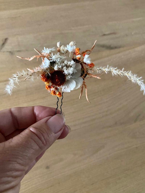 “Haarpin /dotspeld met droogbloemen gelijmd”