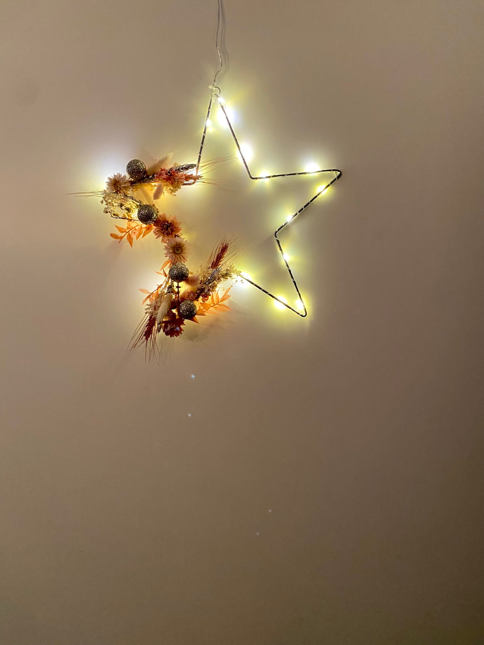 Ster 30cm met droogbloemen en batterij verlichting.