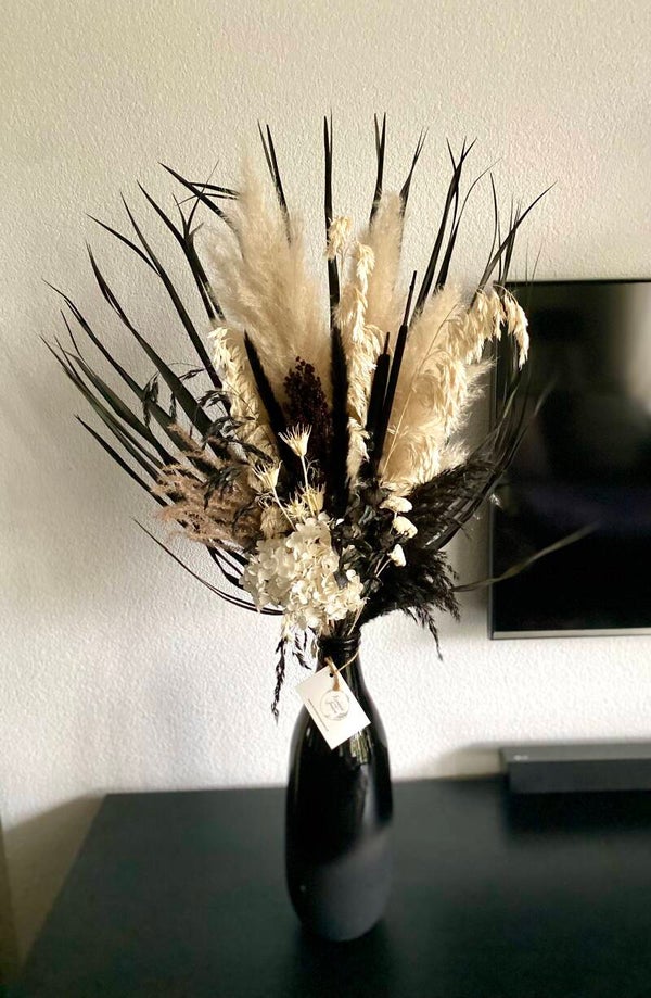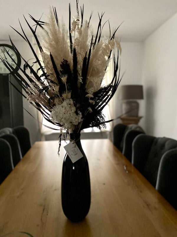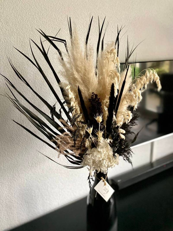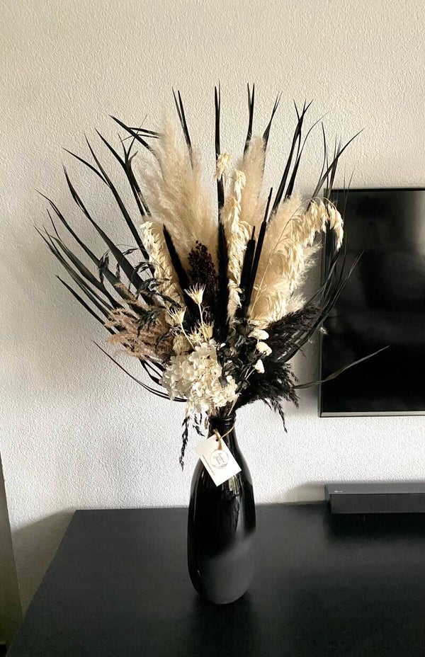 Hoogte vaas inclusief droogbloemen ongeveer 95cm